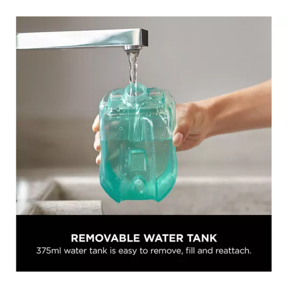 The generously-sized 375ml water tank is easy to remove, fill and attach.