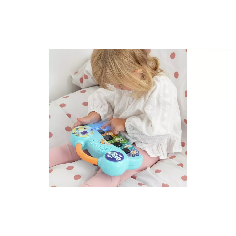 The Bluey & Friends Keyboard is a perfect first piano for any little musician. Turn on to hear the Bluey theme tune and introduce music to your little one. Play and create your tunes by pressing the musical keys, or switch to fun mode and play along with character phrases. The transparent keys light up in different colours when pressed, encouraging your little ones to have fun with musical activities.