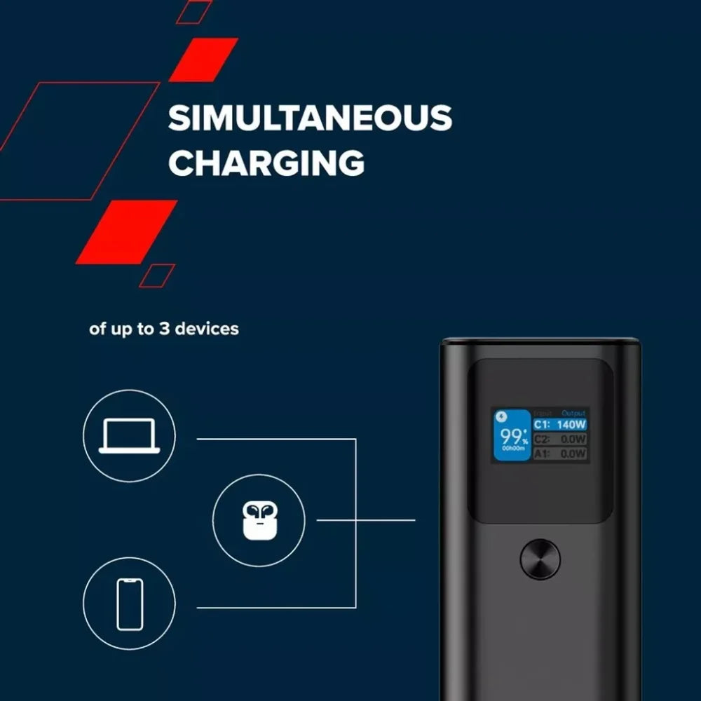 - Powerful Output: Delivers up to 140W via USB-C PD 3.1 ports, suitable for charging laptops and other high-demand devices.