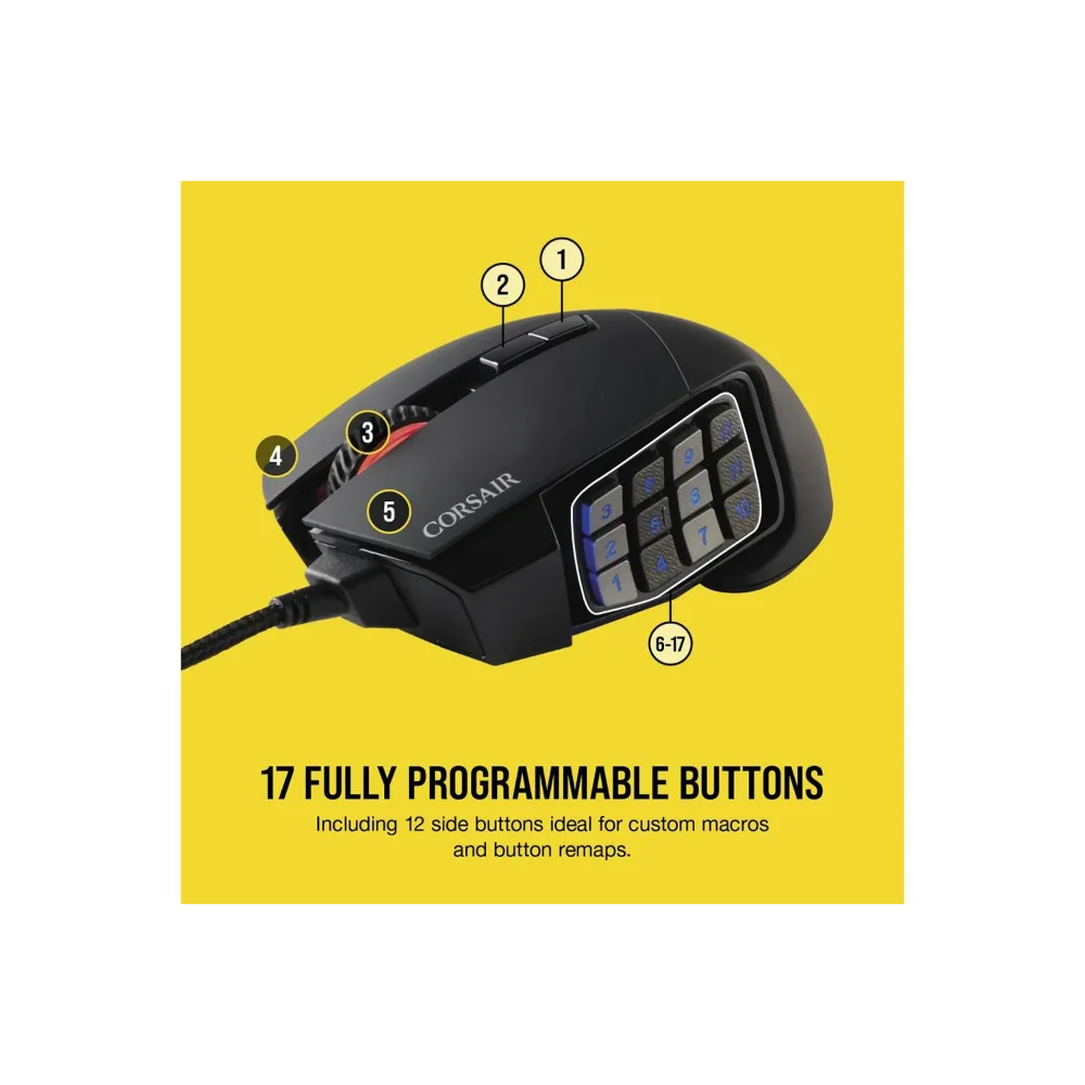 Corsair Scimitar RGB Elite Optical MOBA/MMO Gaming Mouse - Black | 106-CH-9304211-EU is backordered and will ship as soon as it is back in stock.