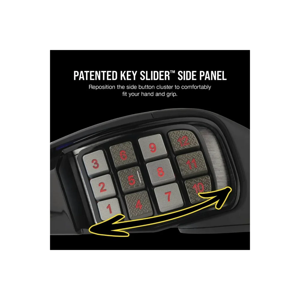 - 12 tactile side buttons with textured keycaps for reliable grip