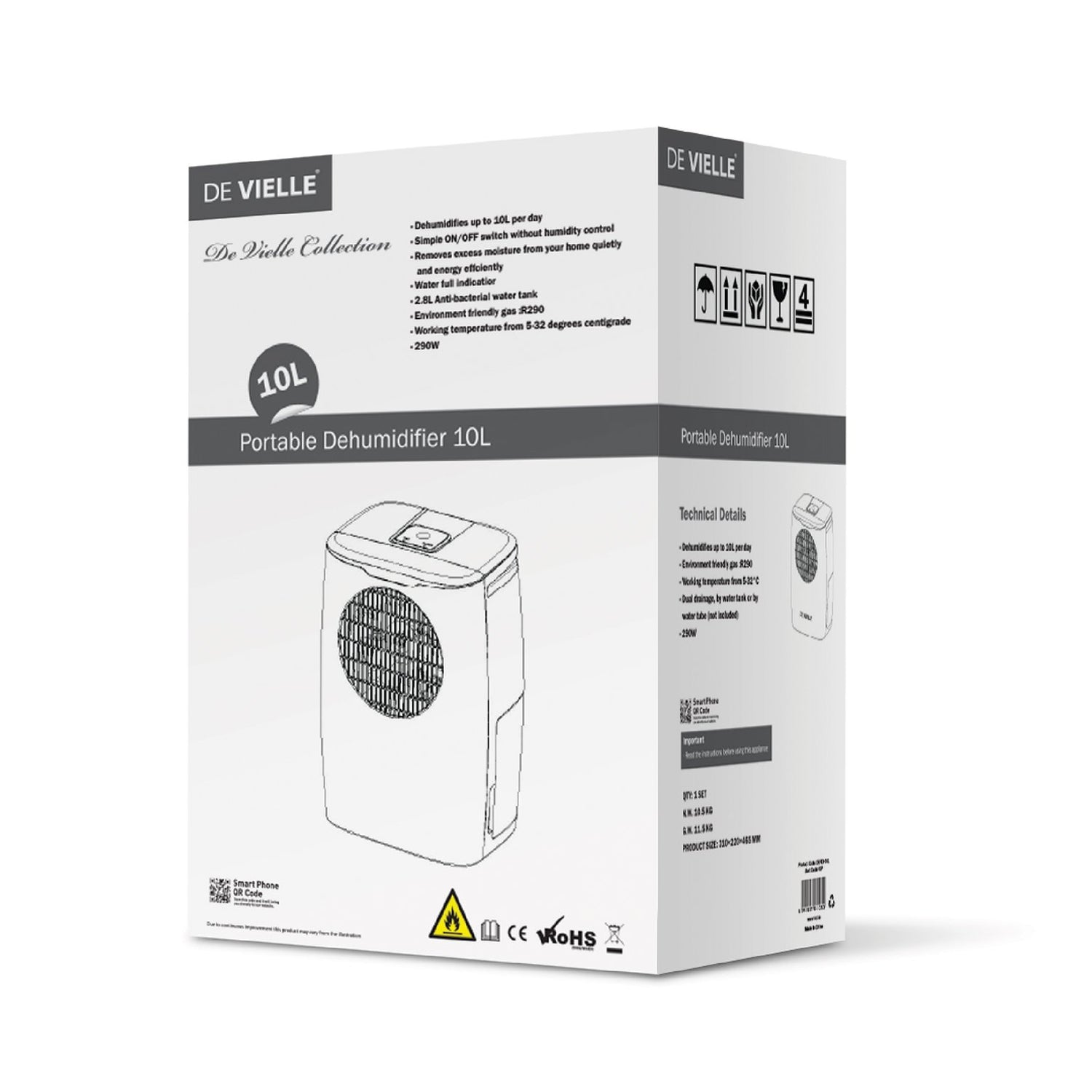 De Vielle Premium Portable Dehumidifier 10 Litre | DEFDH10L