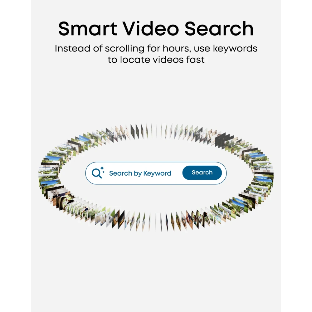 AI-Powered Video Finder: Instantly find what you're looking for by searching with keywords on the eufy app to avoid scrolling through hours of footage.