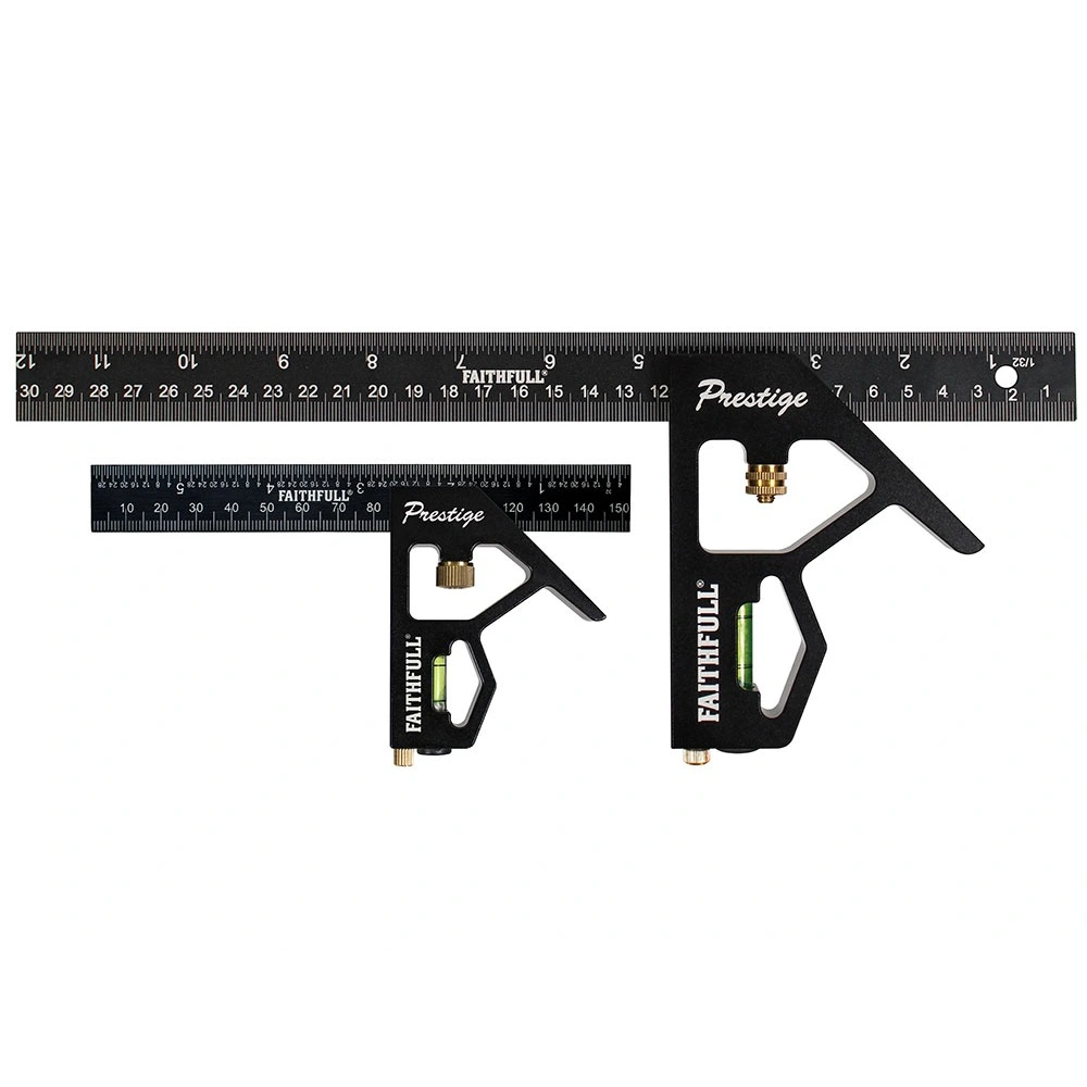 Faithfull Prestige Aluminium Combination Square Twin Pack 150mm (6in) & 300mm (12in)