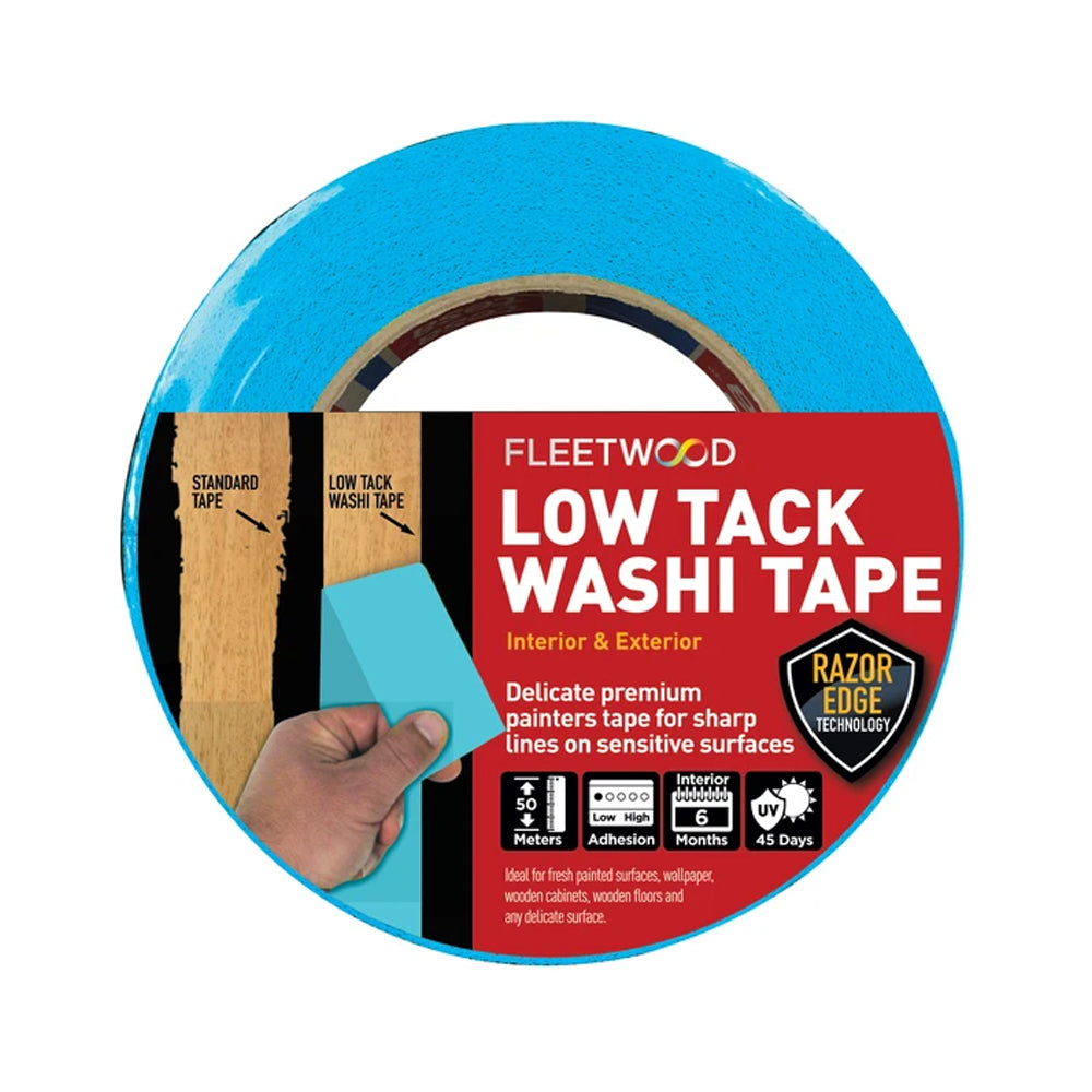 The Fleetwood 2" Low Tack Washi Tape is a delicate premium Painters Tape for sharp lines on sensitive surfaces. Ideal for freshly painted surfaces, wallpaper, wooden cabinets, wooden floors, and any delicate surface, making it the perfect addition to your toolbox.