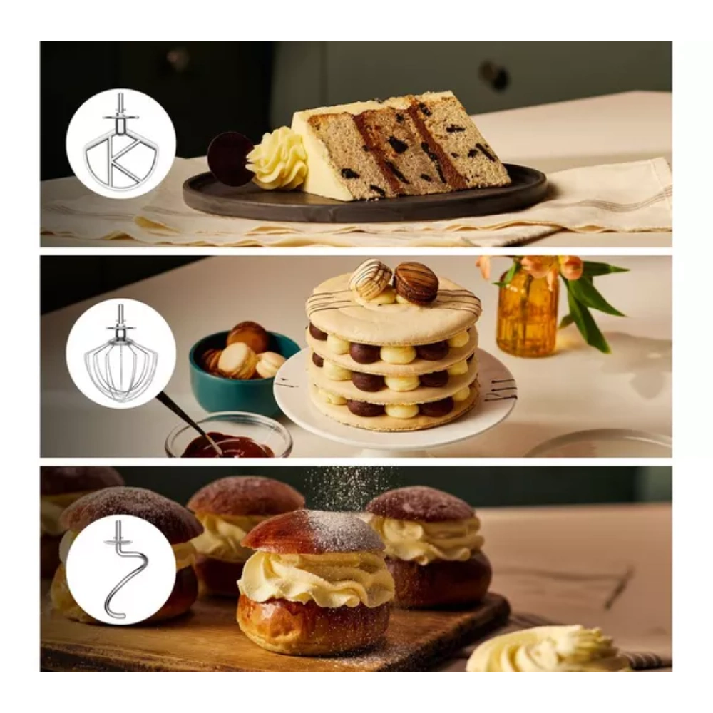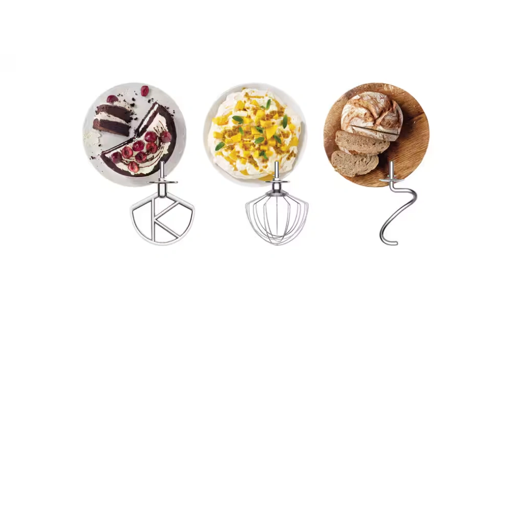 Getting started is as easy as one, two, three with the whisk, a dough tool, and the legendary K-Beater. Whatever's on the menu, create delicious treats in no time.