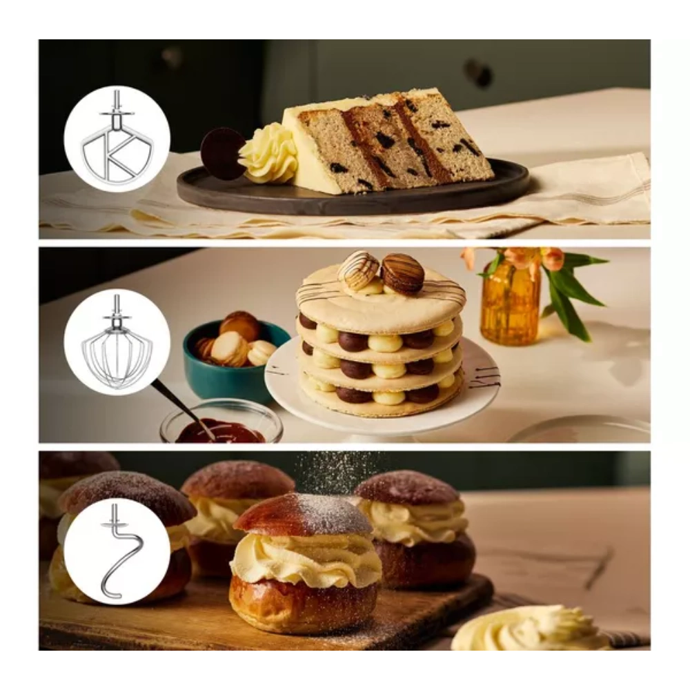 Getting started is as easy as one, two, three with the whisk, a dough tool, and the legendary K-Beater. Whatever's on the menu, create delicious treats in no time.