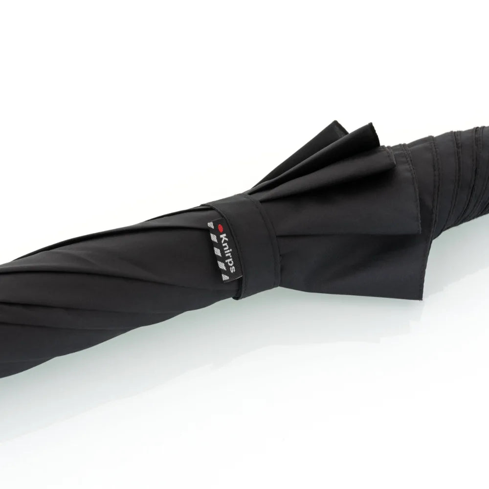 The umbrella cover is made of 100% polyester for water resistance and durability. Knirps backs this model with a 5-year extended guarantee, reflecting the high-quality materials and construction.