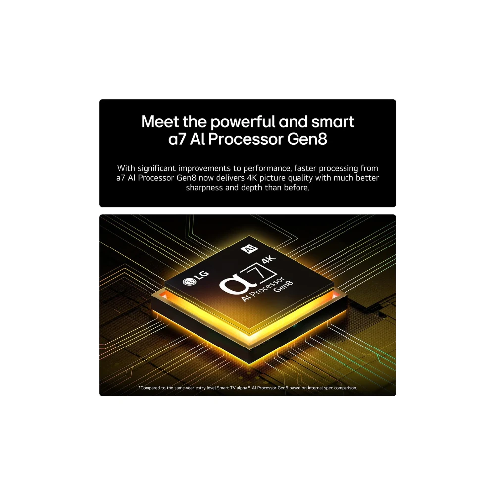 LG's powerful processor boosts the resolution to the original quality. Enjoy 4K Super Upscaling enhanced resolution, brightness, and clarity.