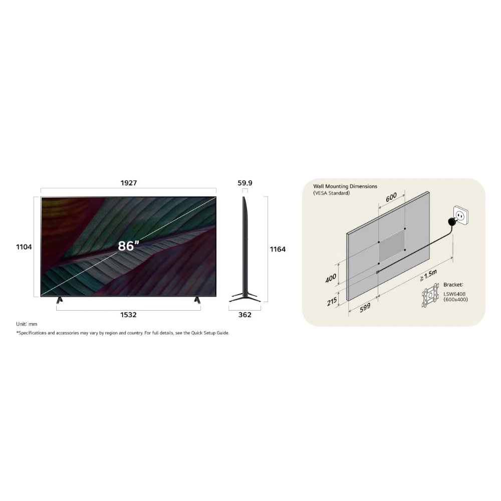 LG 86 Inch UR78 Smart 4K Ultra HD HDR LED TV | 86UR78006LB.AEK