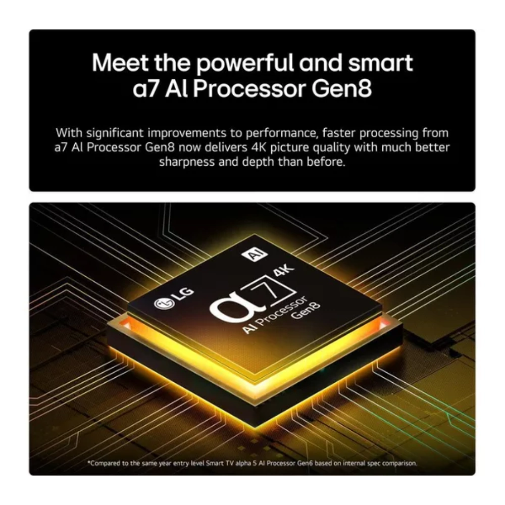 LG’s powerful processor enhances resolution, brightness, and clarity for lifelike visuals in every frame.