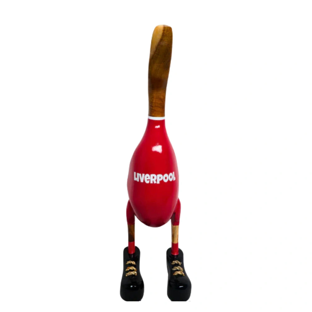 Bring personality and team pride into your space with this handcrafted Lucky Duck. Made from sustainable bamboo root, each duck is individually carved and hand-painted in the iconic Liverpool colours, making every piece completely unique. Finished with a high-gloss lacquer and fitted with signature wooden boots, this decorative duck is full of charm and character. Whether displayed in a living room, on a shelf, or proudly gifted to a football enthusiast, this quirky collectible is guaranteed to stand out. A fun, stylish, and eco-friendly décor piece for fans and collectors alike.