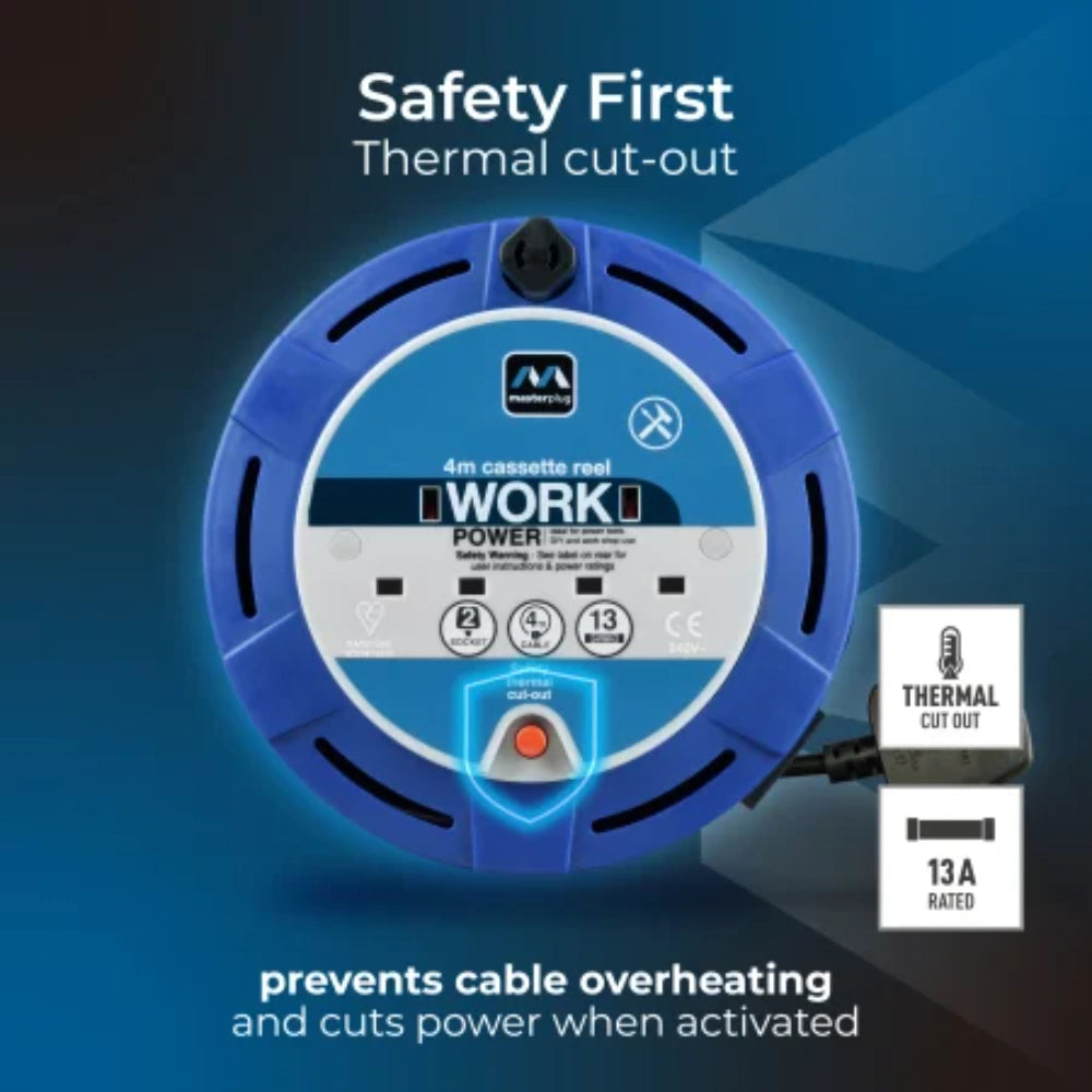 Masterplug 2 Socket 4 Metre Cable Extension Reel - Blue | SCT0413/2BL-MP is backordered and will ship as soon as it is back in stock.