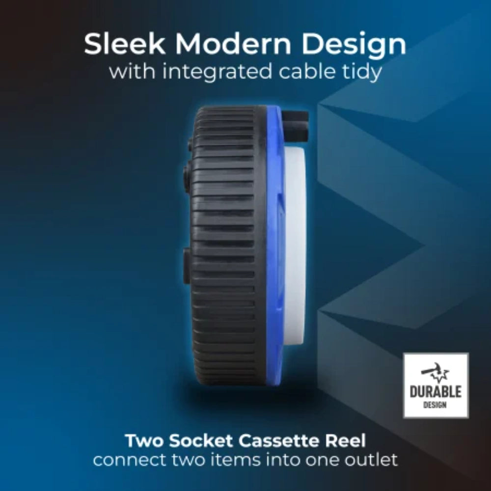 This Masterplug compact cassette reel is just perfect when you need a cable reel around the home. The sturdy yet light portable cable reel has a 4 metre cable with two sockets, enabling you to use for home or even in the garden.
