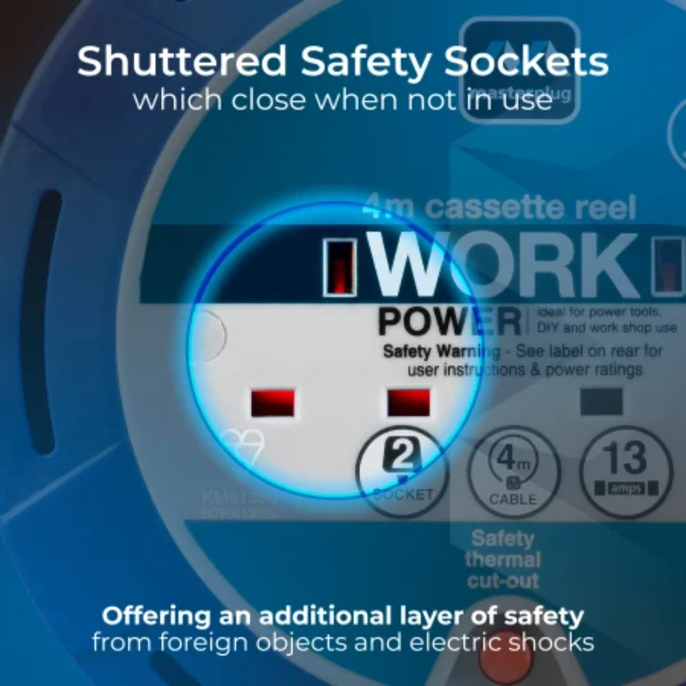 Masterplug 2 Socket 4 Metre Cable Extension Reel - Blue