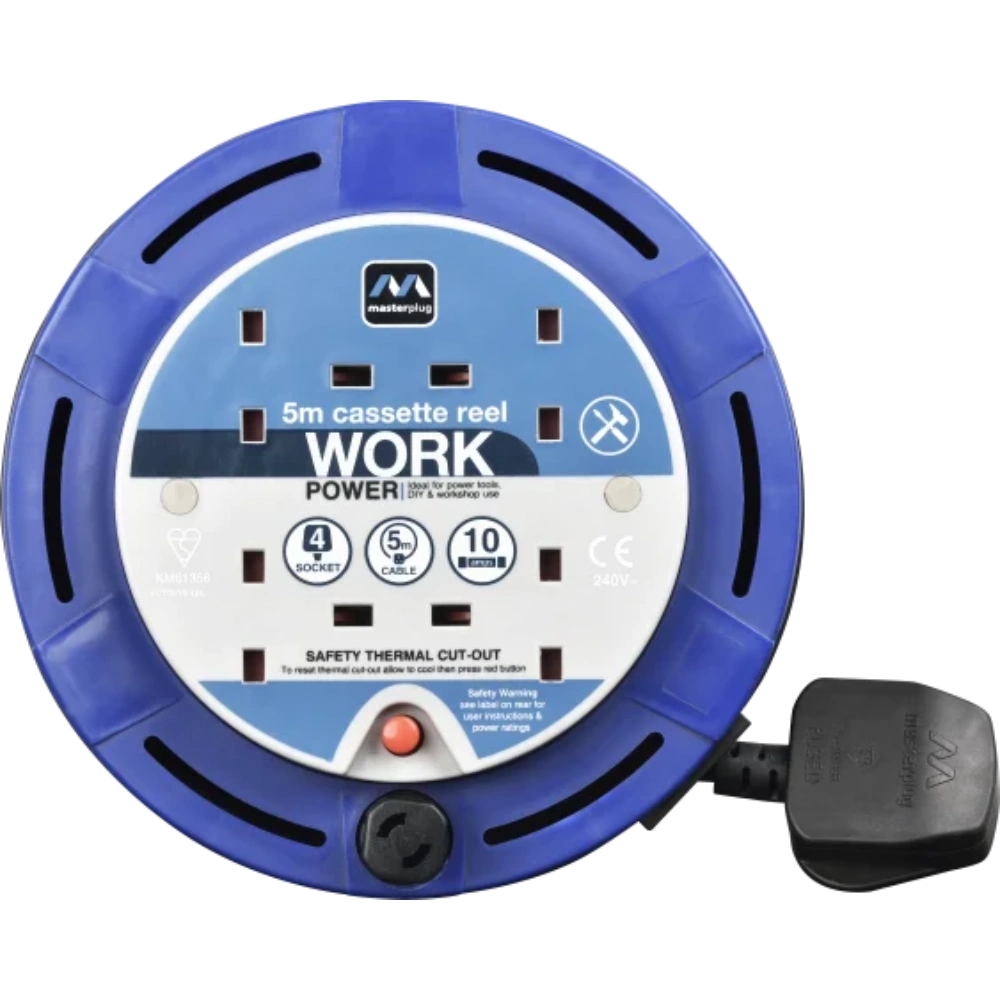 Masterplug 4 Socket 5 Metre Cable Extension Reel 10amp | SCT0510/4BL-MP is backordered and will ship as soon as it is back in stock.