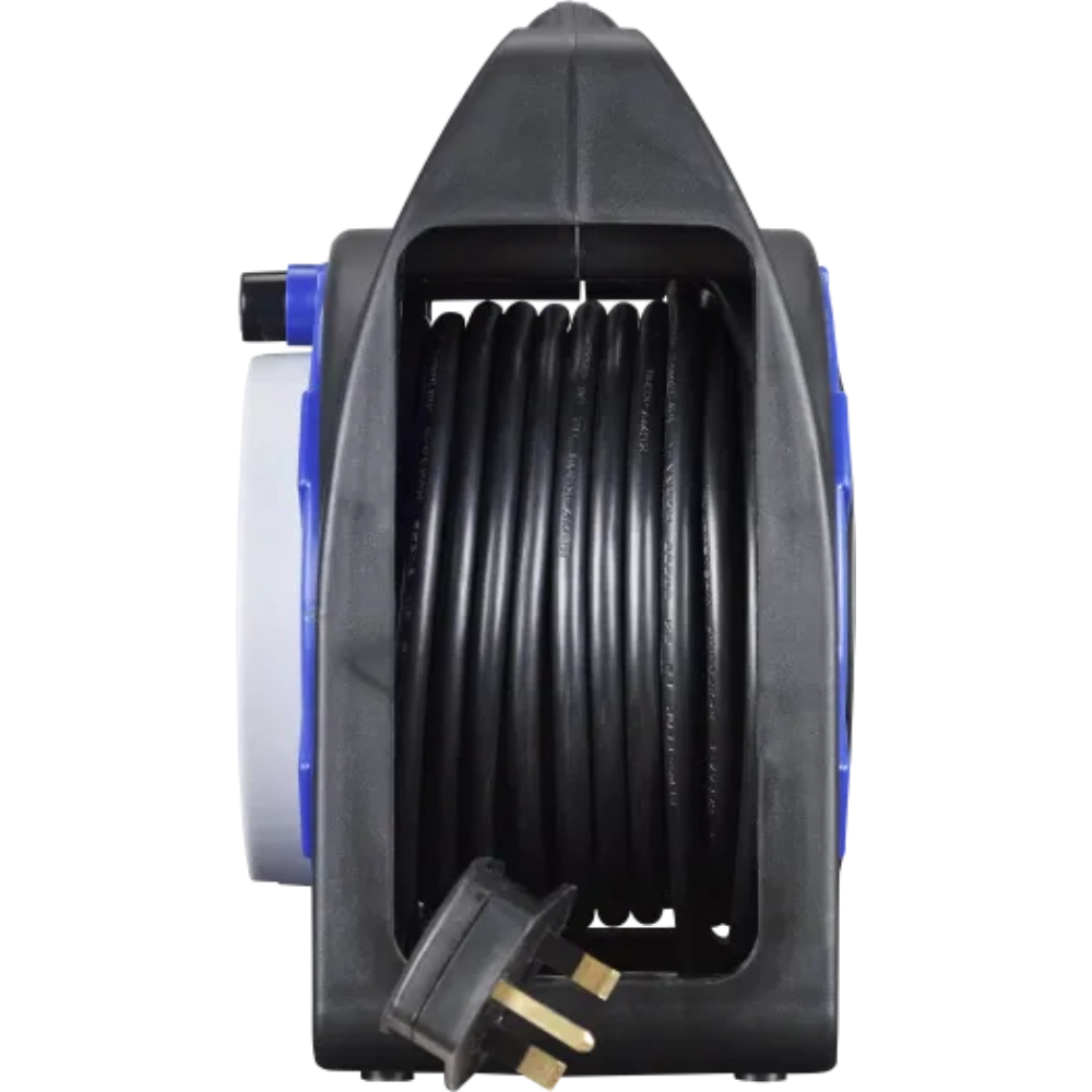 With a robust design, this Masterplug case reel with four sockets and 15 metres of cable is perfect for using around the home, garden or office. With a comfortable and robust handle for transporting, the cable is protected by the outer plastic casing which enables convenient and safe storage. Its tough, robust design is practical and the handle allows easy transportation and flat base enables reel to stand up. The thermal cut-out prevents overheating if the reel is overloaded