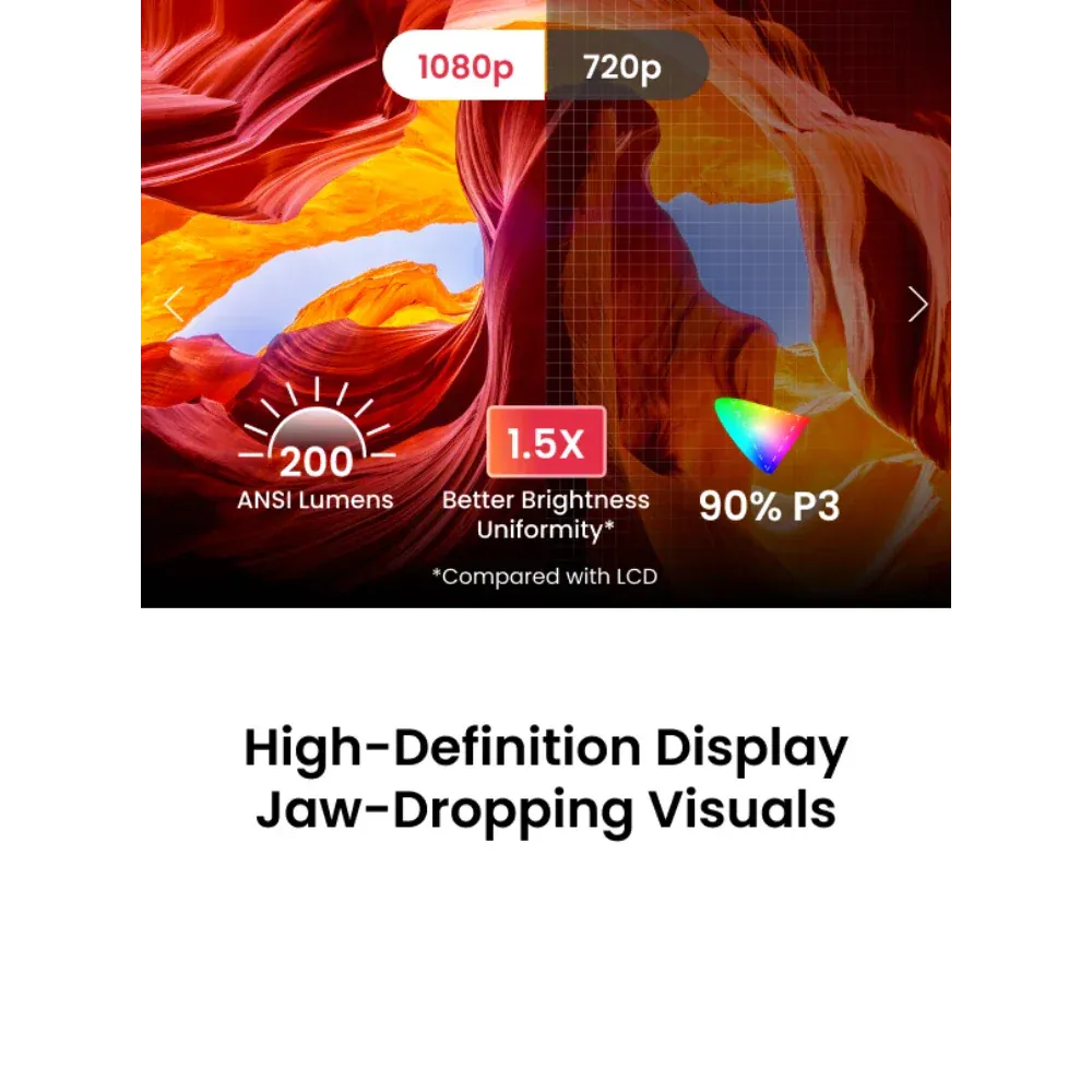 The 1080p display with 200 ANSI Lumens of brightness makes movies shine for an immersive watching experience.