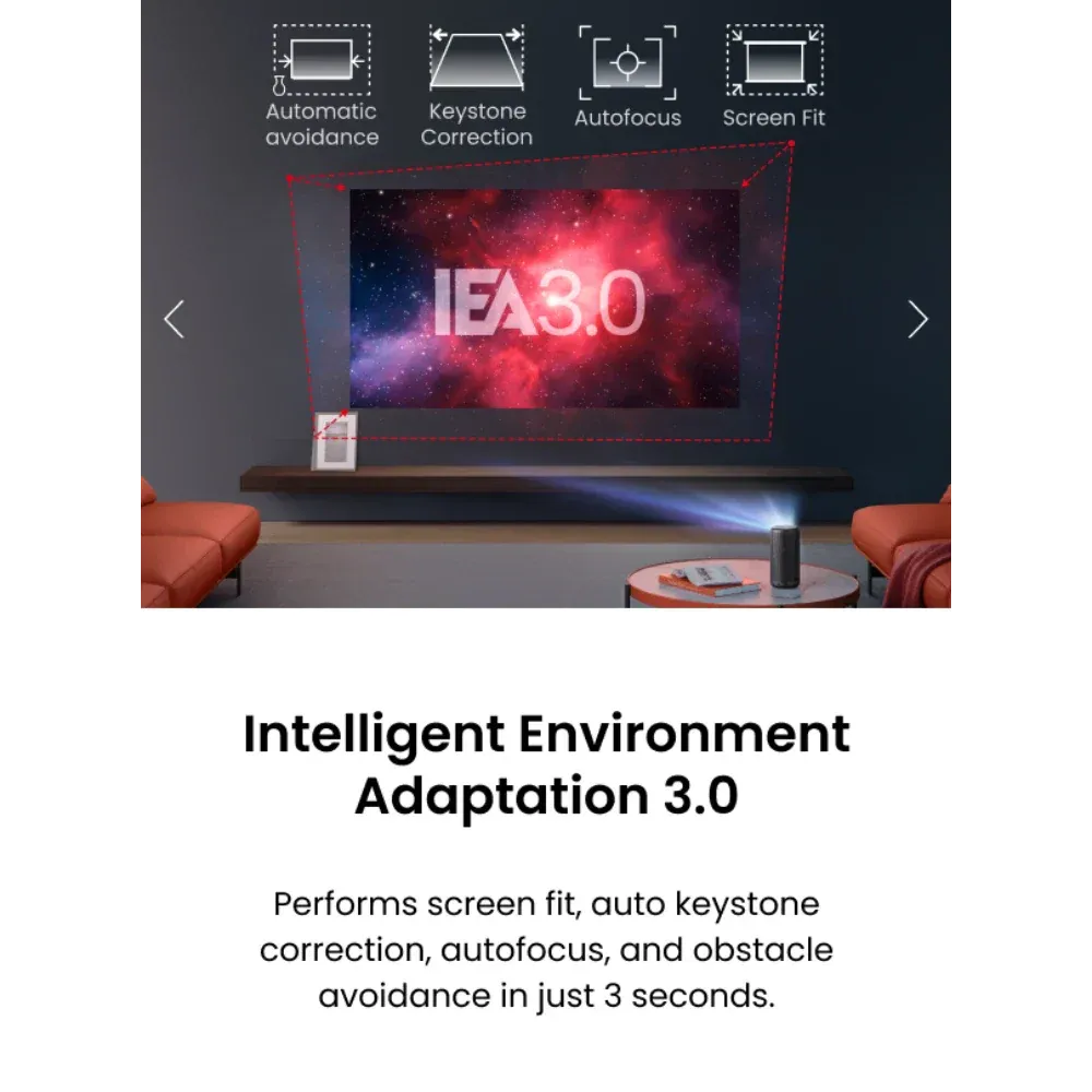 Our Intelligent Environment Adaptation Technology performs auto keystone correction, autofocus, keystone correction and obstacle avoidance in just 3 seconds.