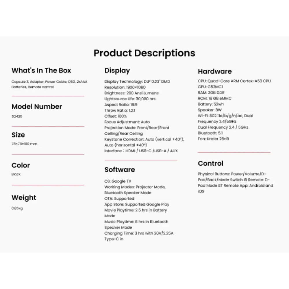 Capsule 3 is the world's smallest Google TV projector with built-in Netflix.