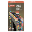 The Premier Decorations 3000 LED Multi-Action Clusterbright Christmas Lights - Multi-Coloured create the visual effect of multiple strands of lights when wrapped around a tree or garland. They feature superbright energy efficient LEDs and eight programmable settings with timer function. The lights come with 10m of cable before the first bulb (1.3cm space between each bulb) and a total lit length of 37.5m. They are suitable for use indoors and outdoors.