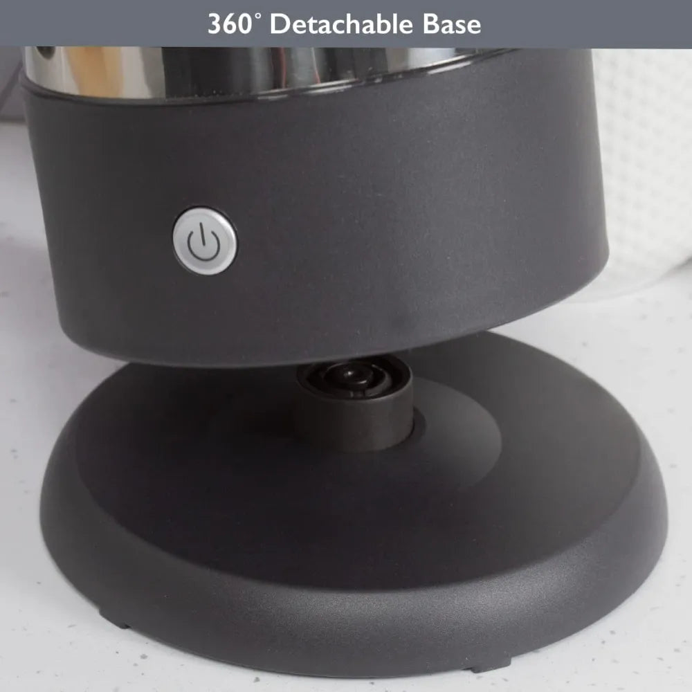 Made from durable stainless steel, it's resistant to rust and easy to clean. The 360° rotating base and ergonomic handle make pouring effortless from any angle. It also includes non-slip feet for added stability and built-in cord storage to keep your counter tidy.