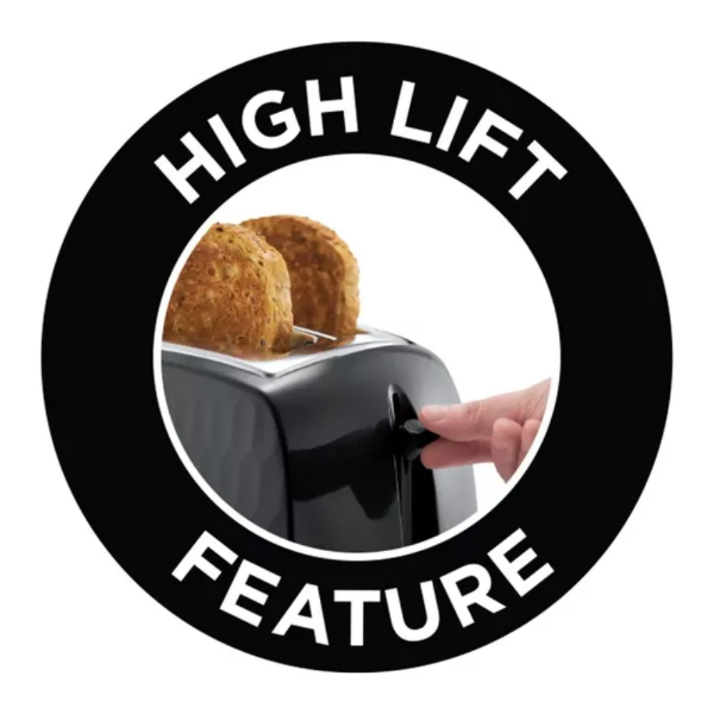 Effortlessly lift your toast out of the toaster, thanks to the High Lift Feature on the Honeycomb 2 Slice Grey Toaster. Letting you easily and safely remove your toast from the slots, this feature not only takes care of your fingertips, but also brings convenience to breakfast time.