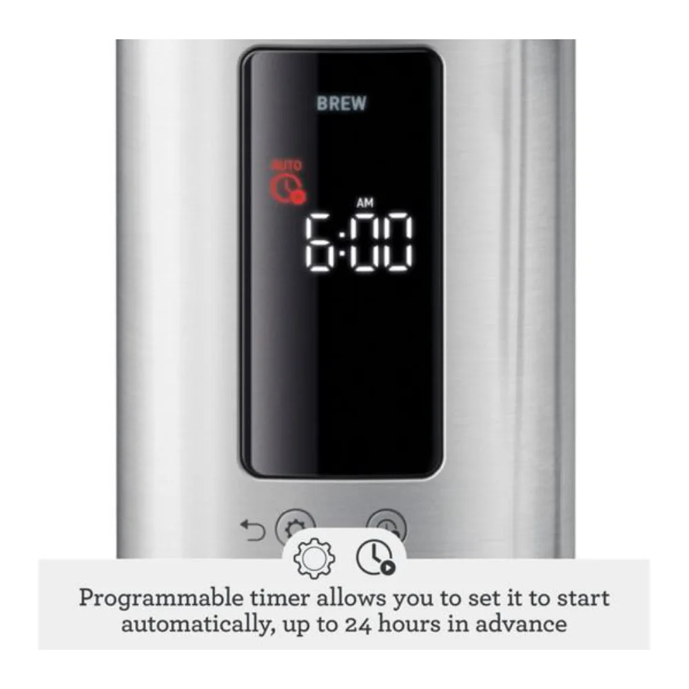 Programme the brewer to start automatically, up to 24 hours in advance, so coffee is ready when you are.