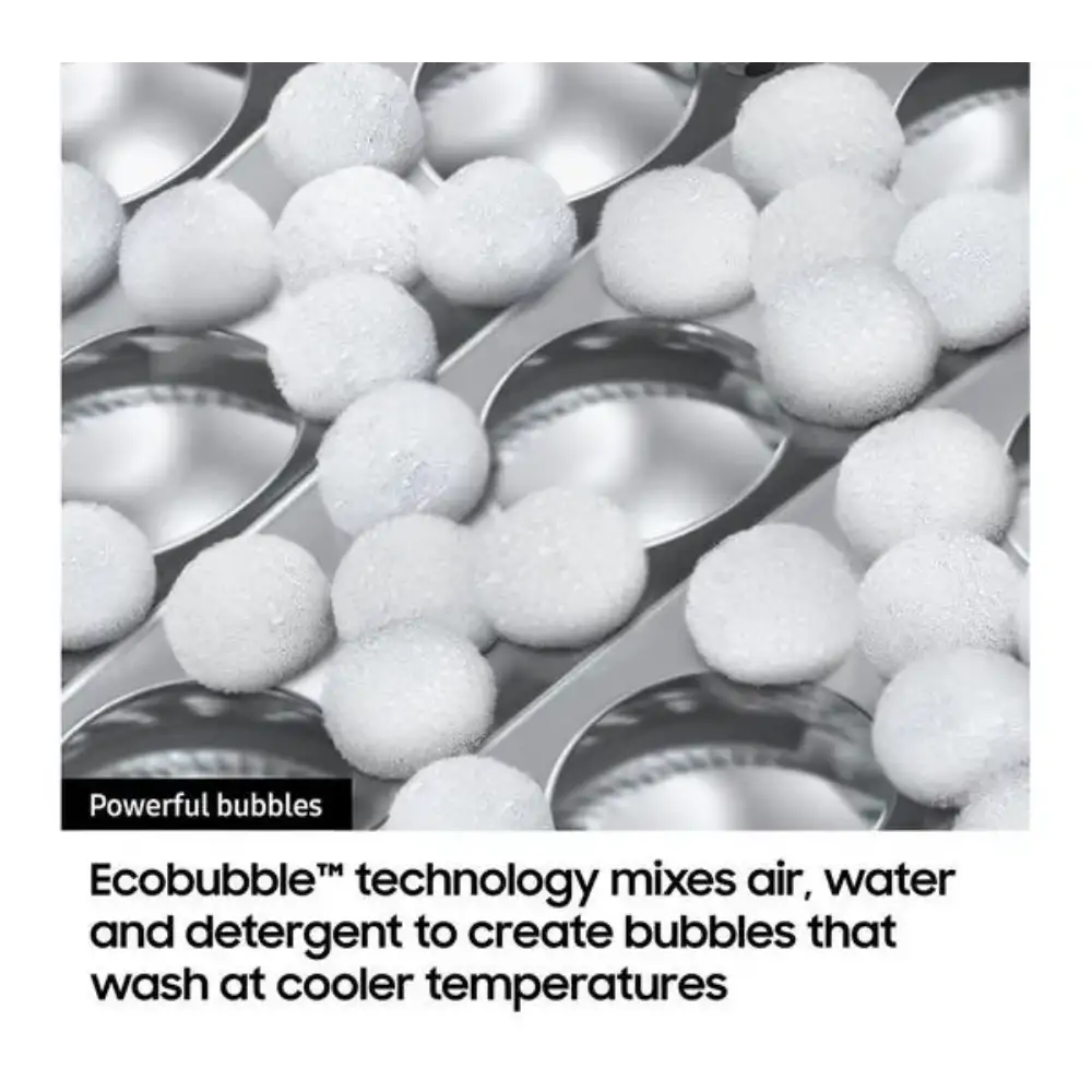 The Samsung Series 6 AI washing machine uses AI Wash sensors to automatically calculate the optimal amount of water, detergent, rinse cycles, and spin speed for each load. This ensures perfectly cleaned clothes while saving energy and water.
