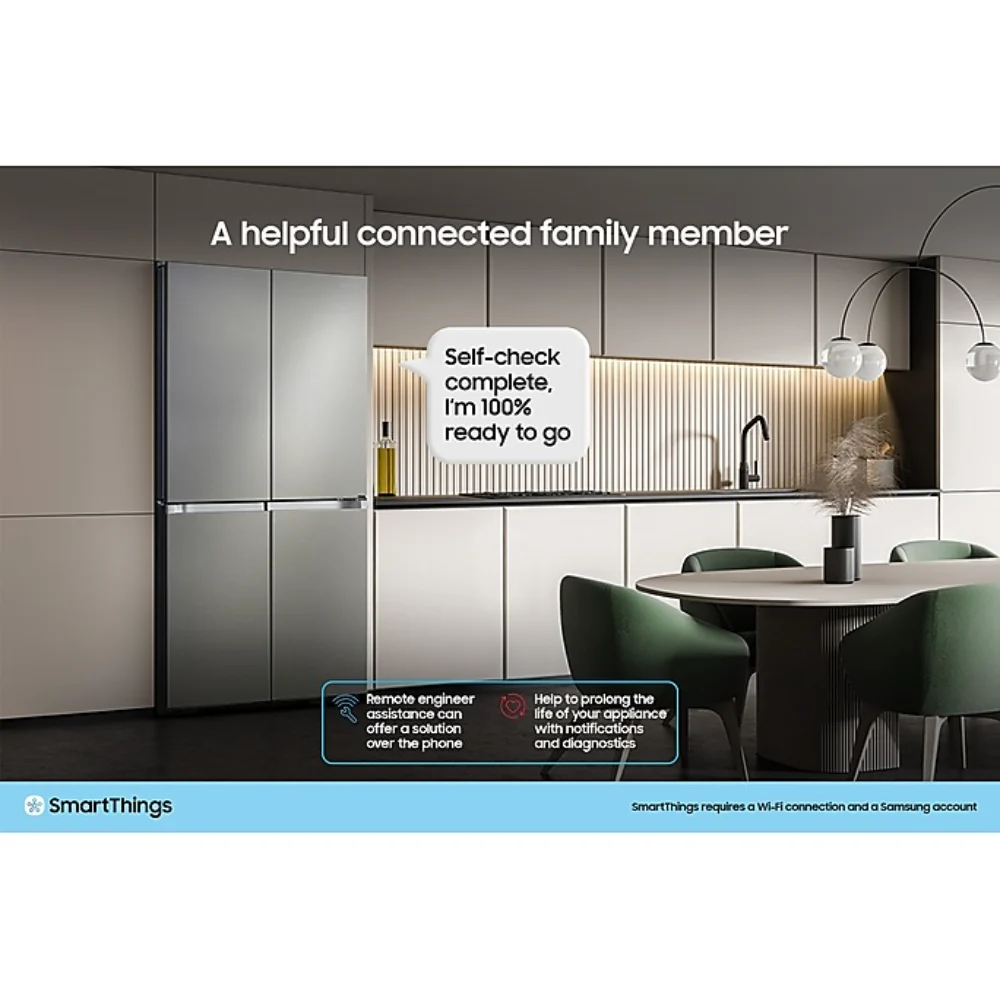 Monitor and take care of your refrigerator easily. SmartThings Home Care*, provides real-time monitoring and alerts. You can check on the refrigerator’s status, including the condition of the water filter and how often the door is opened. It also automatically notifies you if parts need replacing or possible problems are detected, such as spillage from the Autofill Pitcher, and suggests a solution to solve them.3