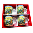 - Set of 4 ceramic mugs with vivid green tractor illustrations