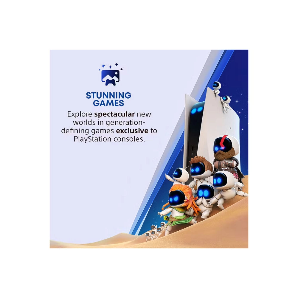 Experience lightning fast loading with an ultra-high speed SSD, deeper immersion with support for haptic feedback, adaptive triggers, and 3D Audio[1], and an all-new generation of incredible PlayStation games.