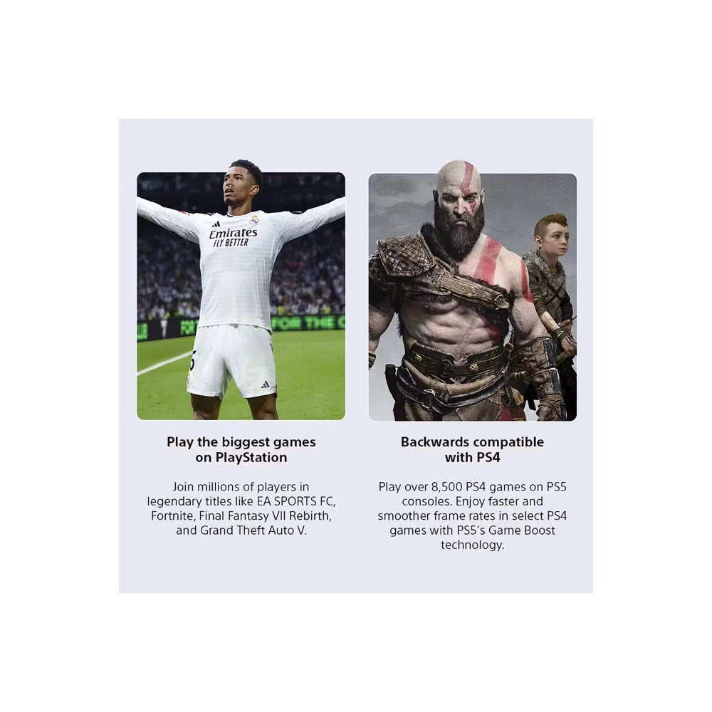 The PS5 console can play over 8,500 PS4 games. With the Game Boost feature, you can even enjoy faster and smoother frame rates in some of the PS4 console’s greatest games.
