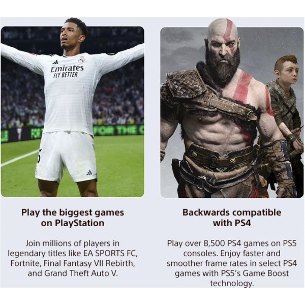 Created with an ultra-high speed SSD for lightning fast game loading, the option for ray tracing graphics and 8K output for deeper immersion, as well as the ability to unleash rich, 3D audio, Sony's stylishly designed, digital-only PlayStation 5 console enables you to experience an all-new generation of exhilarating PlayStation games.