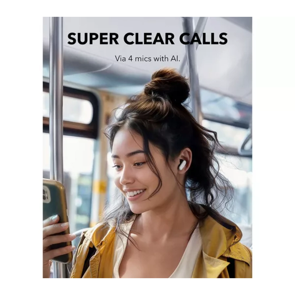 Soundcore R50i NC earbuds’ 10mm drivers and BasSSUp™ tech deliver deep, punchy bass for an immersive, robust audio experience.