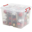 The Strata Christmas Bauble Box with 36 Dividers is ideal for storing away your Christmas baubles when not in use. This storage box comes with card inserts that create 36 individual sections to help protect your baubles from damage. The clear box allows for quick identification of the contents at a glance.