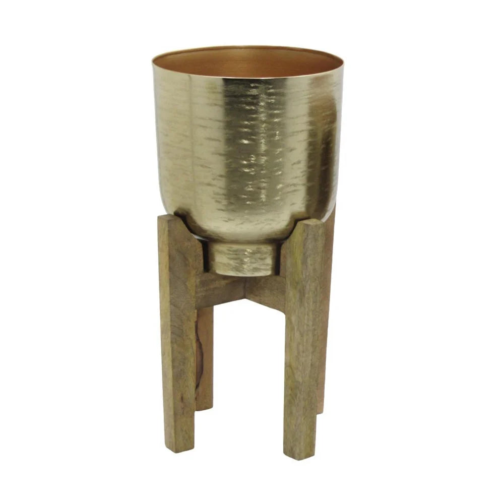 Tara Lane S/2 Gold Planters with Wooden Stands