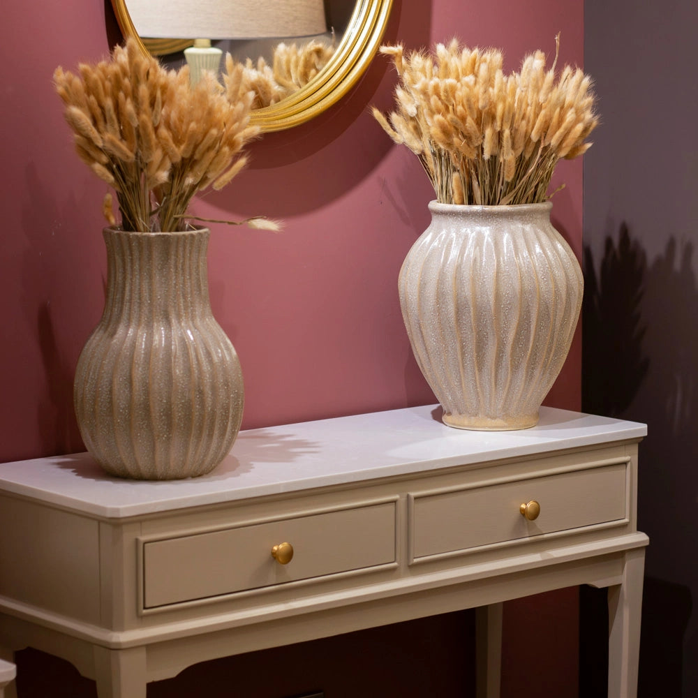 The Tara Lane Earth Ceramic Jug brings a warm, organic touch to your home décor. Its ribbed texture and soft grey finish create a natural, handcrafted look that suits both modern and rustic interiors. Perfect as a standalone accent or filled with dried or artificial stems, this sturdy ceramic jug adds effortless charm to any shelf, console, or tabletop.