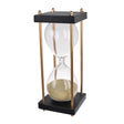 The Tara Lane Hourglass in Stand adds a touch of elegance to any space with its modern black base, gold frame, and soft tan sand. this 30-minute timer is both decorative and functional. Perfect for styling shelves, desks, or side tables while bringing a calming, timeless charm to your home décor.