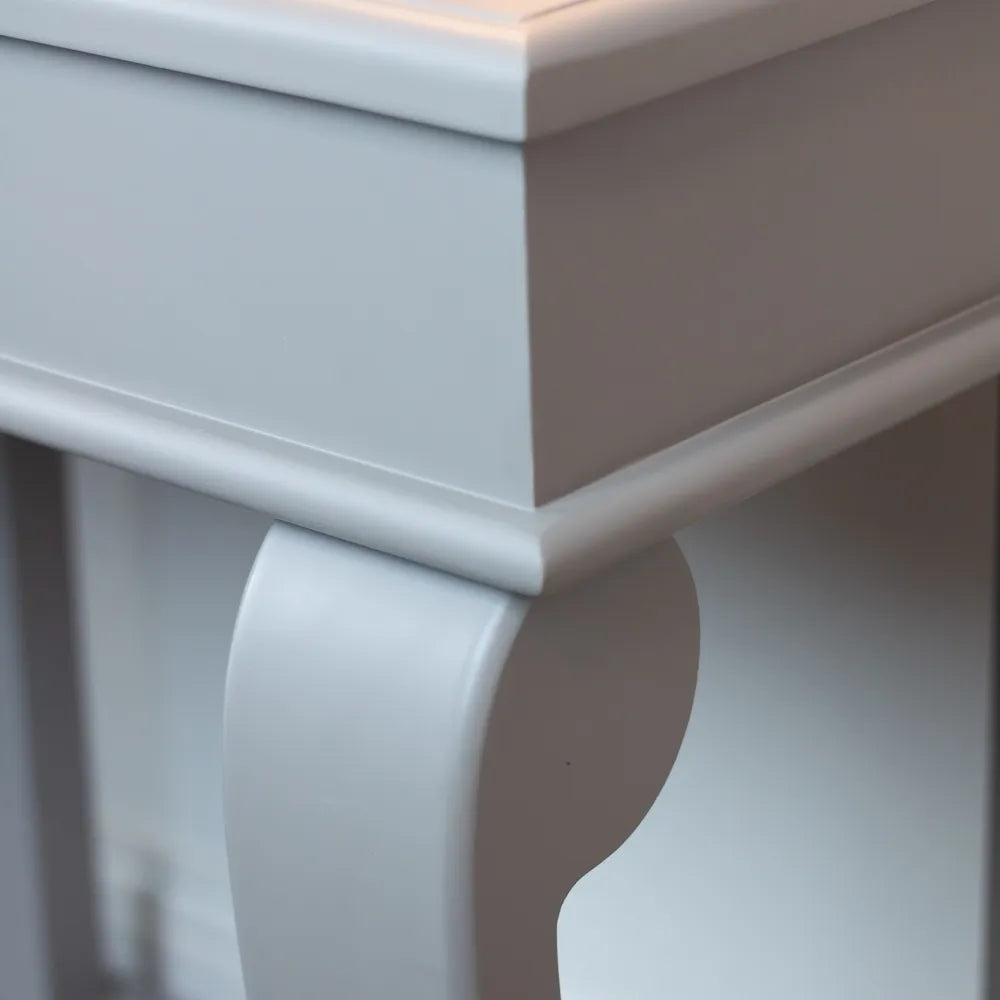 The Tara Lane Scroll Sideboard Table with Drawer in mink combines elegance and practicality. Its sophisticated mink finish and ornate scroll detailing make it a standout piece in any room.