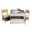 Encourage creativity and organization with this stylish kids’ table and chair set, featuring a modern wood and white design. The table’s chalkboard surface provides a fun space for drawing, writing, and learning, while the built-in under-table compartments keep books, toys, and art supplies neatly stored. Each of the two sturdy chairs includes its own storage basket for added convenience. Perfect for playrooms, bedrooms, or study areas, this durable wooden set is both functional and attractive, making it an ideal choice for young learners.