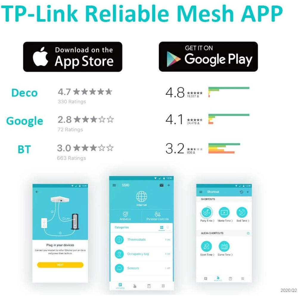 - Simple and Smart: Easily setup and manage your network with the Deco app